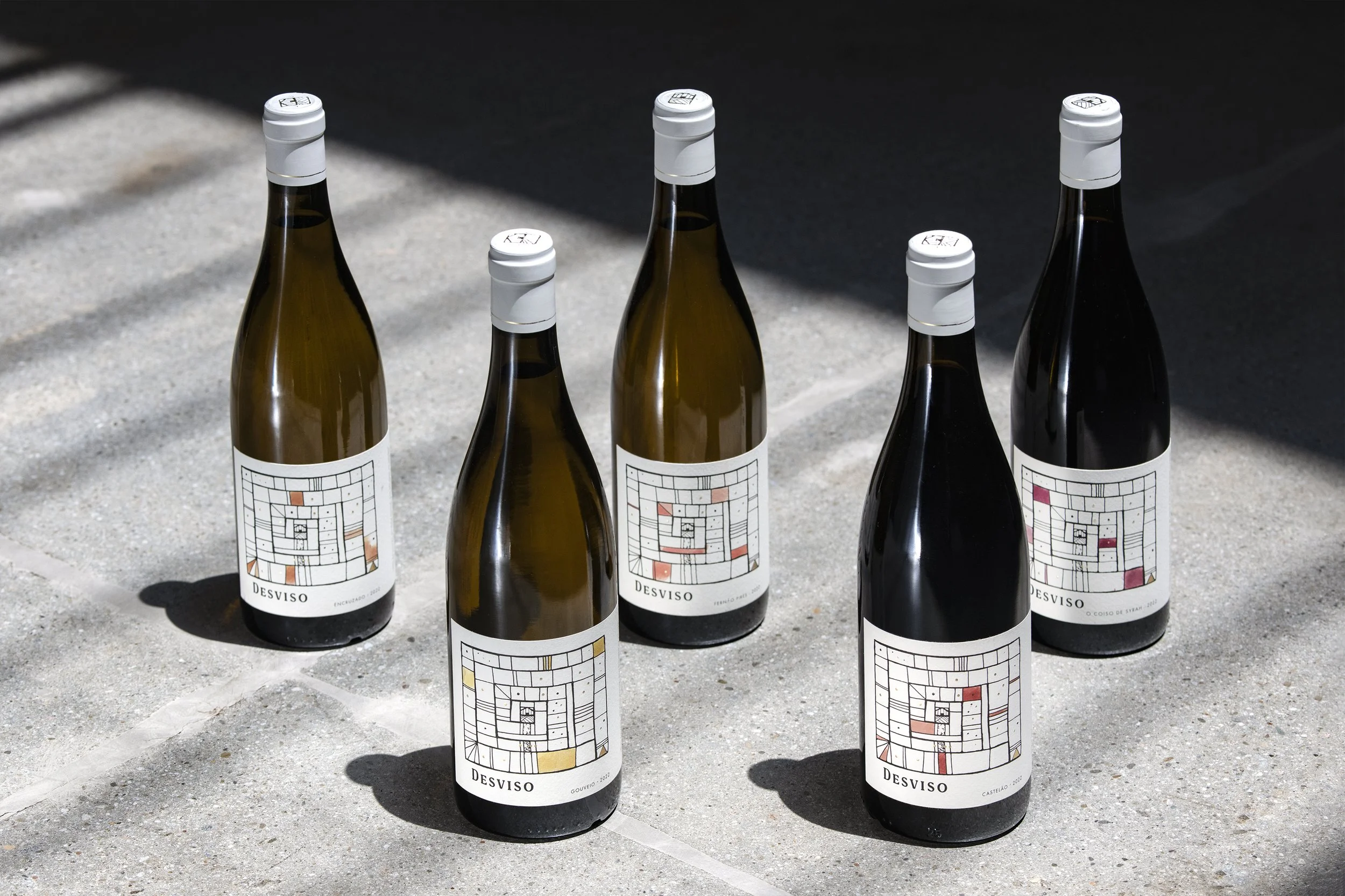The design for Desviso—named as a playful nod to the Portuguese word for "detour"—centers around a hand-illustrated maze, symbolizing the unique paths and shared journey that brought the winemakers to this project. The label’s restrained color palette and subtle embellishments create an understated yet captivating visual that reflects the brand’s story and ethos.